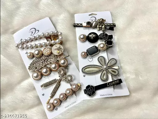 11 Piece Korean Style Pearl Barrettes Women’s Set Hairpin Korean Style Hair Clip Marble Alligator bobby pins Duckbilled Headdress Jewelry Hair Accessories set
